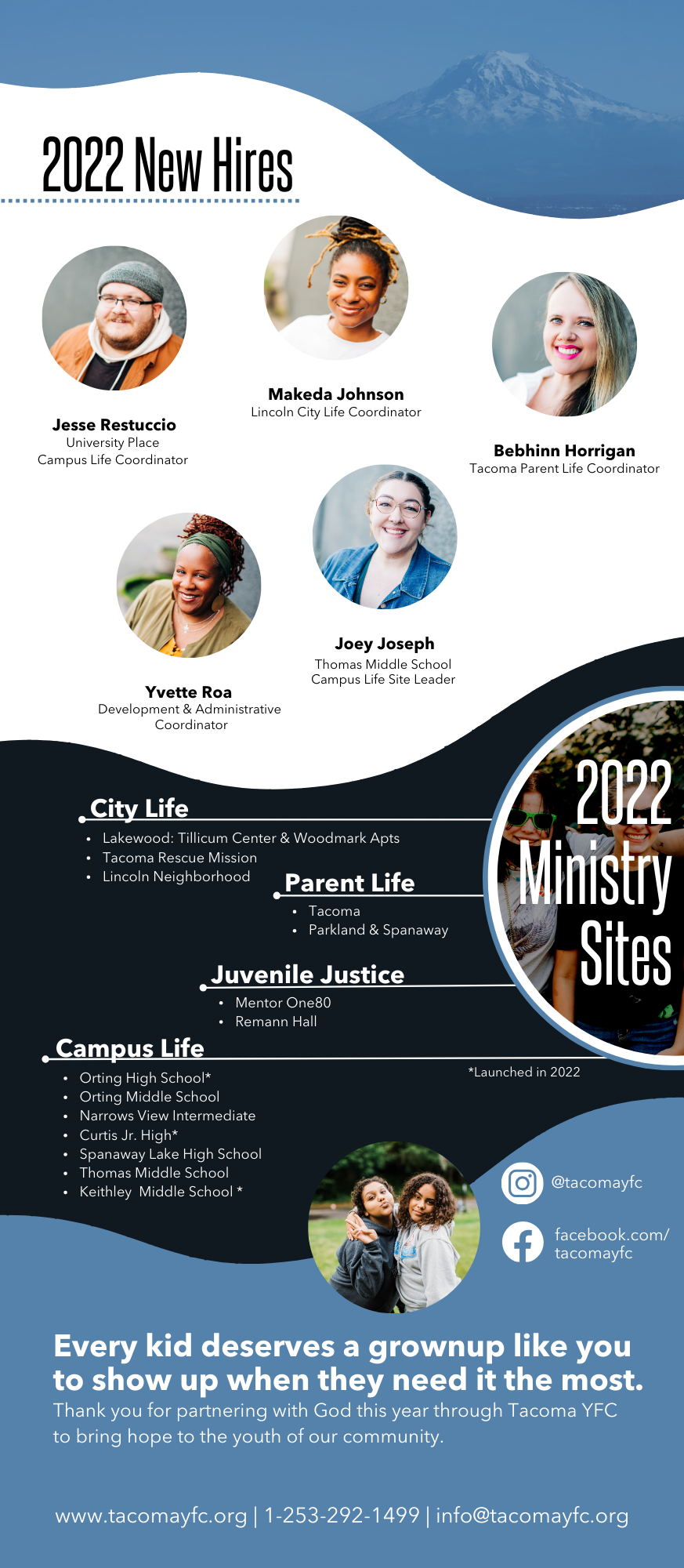 With a wide range of events and campaigns, Tacoma YFC needed branded print collateral that was visually engaging while remaining mission-aligned and consistent with national brand standards.